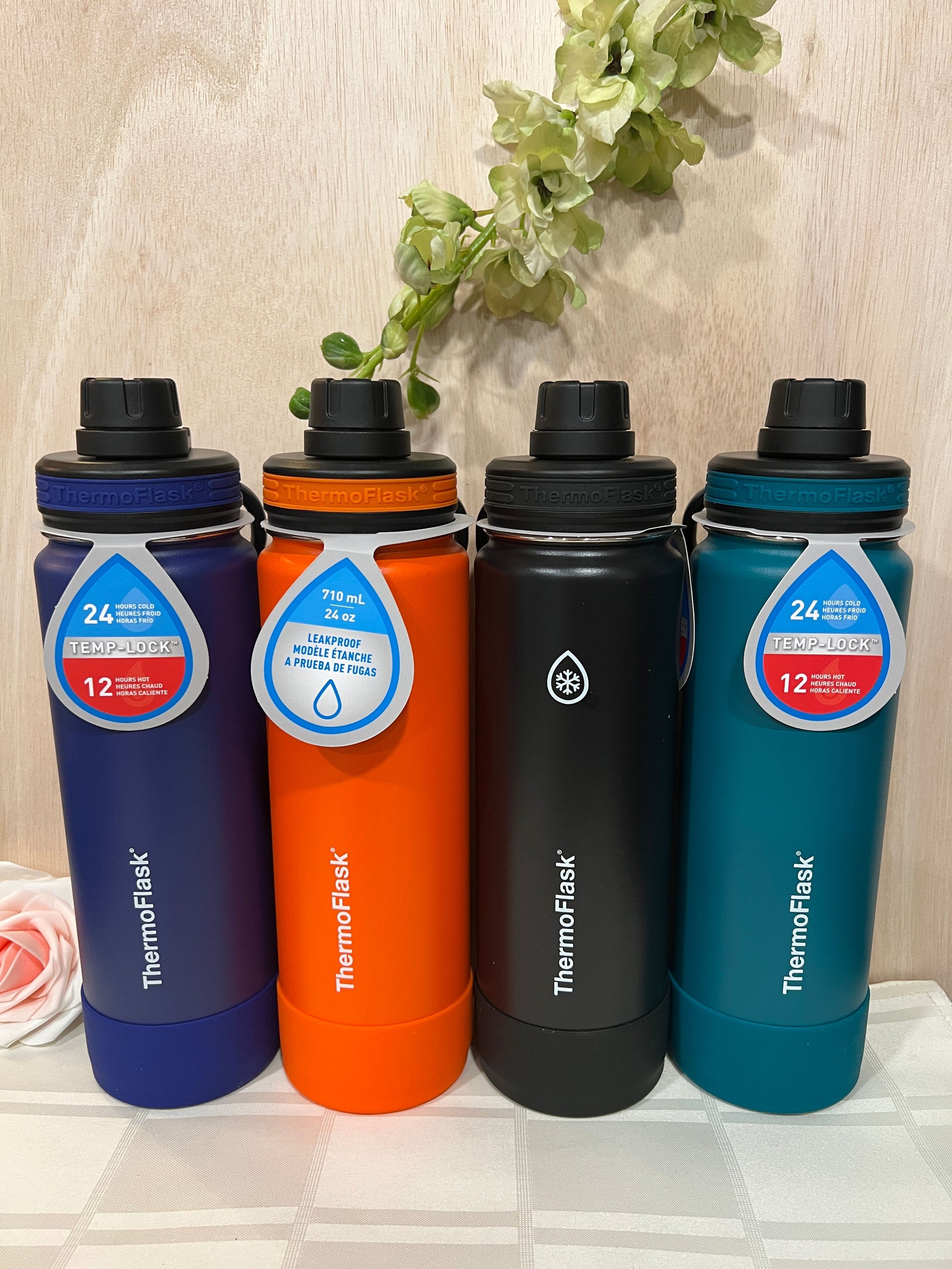 24 oz Spout/Twist Cap ThermoFlask Water Bottle. It comes with removable, protective bumper for added durability.