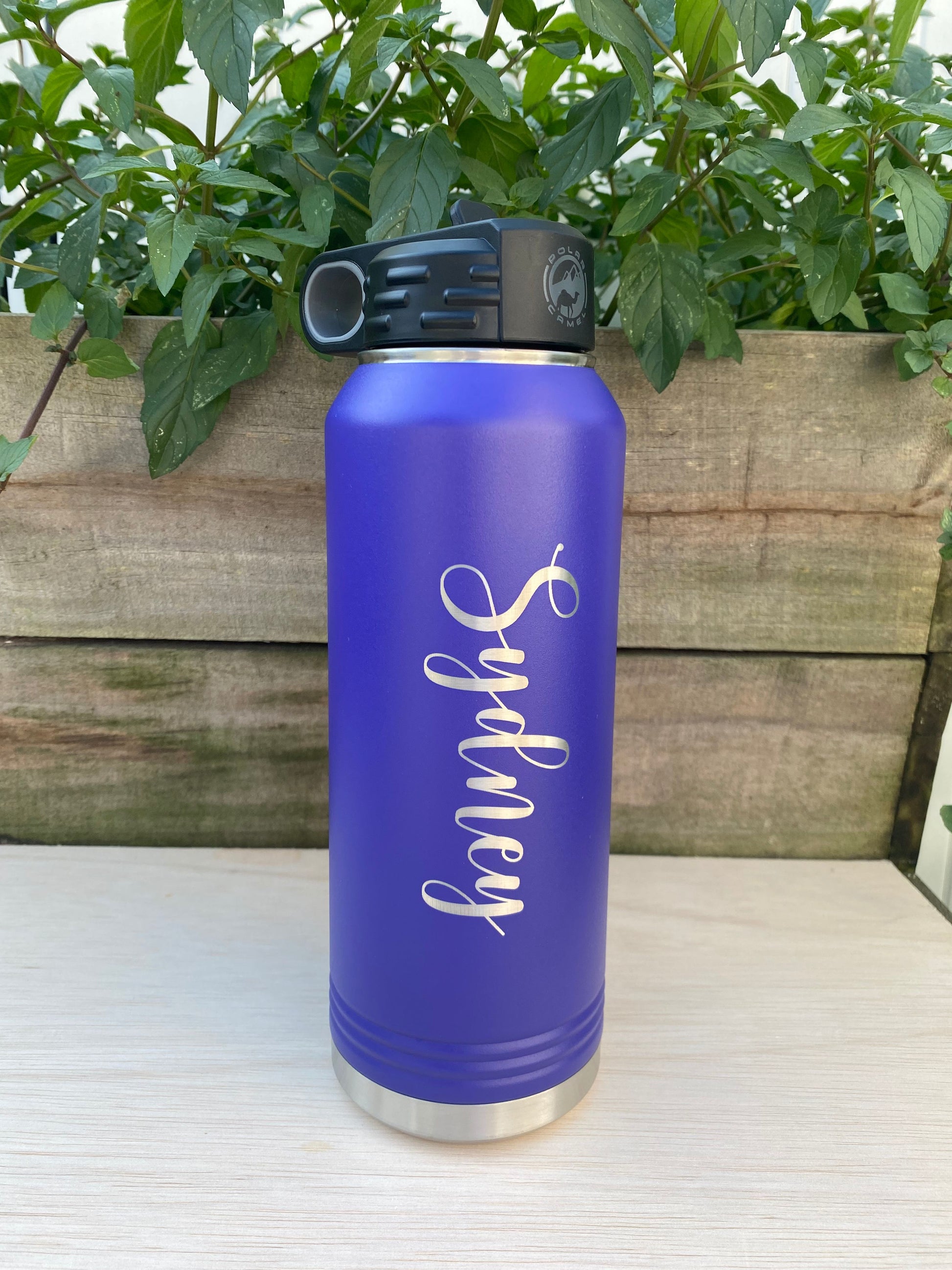 32 oz Personalized Water Bottle with Straw Lid. Front of the bottle will be engraved with one line name of your choice.