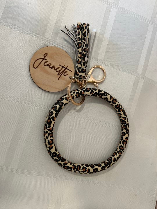 At checkout: choose the color/pattern of the key ring and type in the color of tumbler you would like. The color for the tassel of the keychain will be matched with the key ring pattern that you chose.