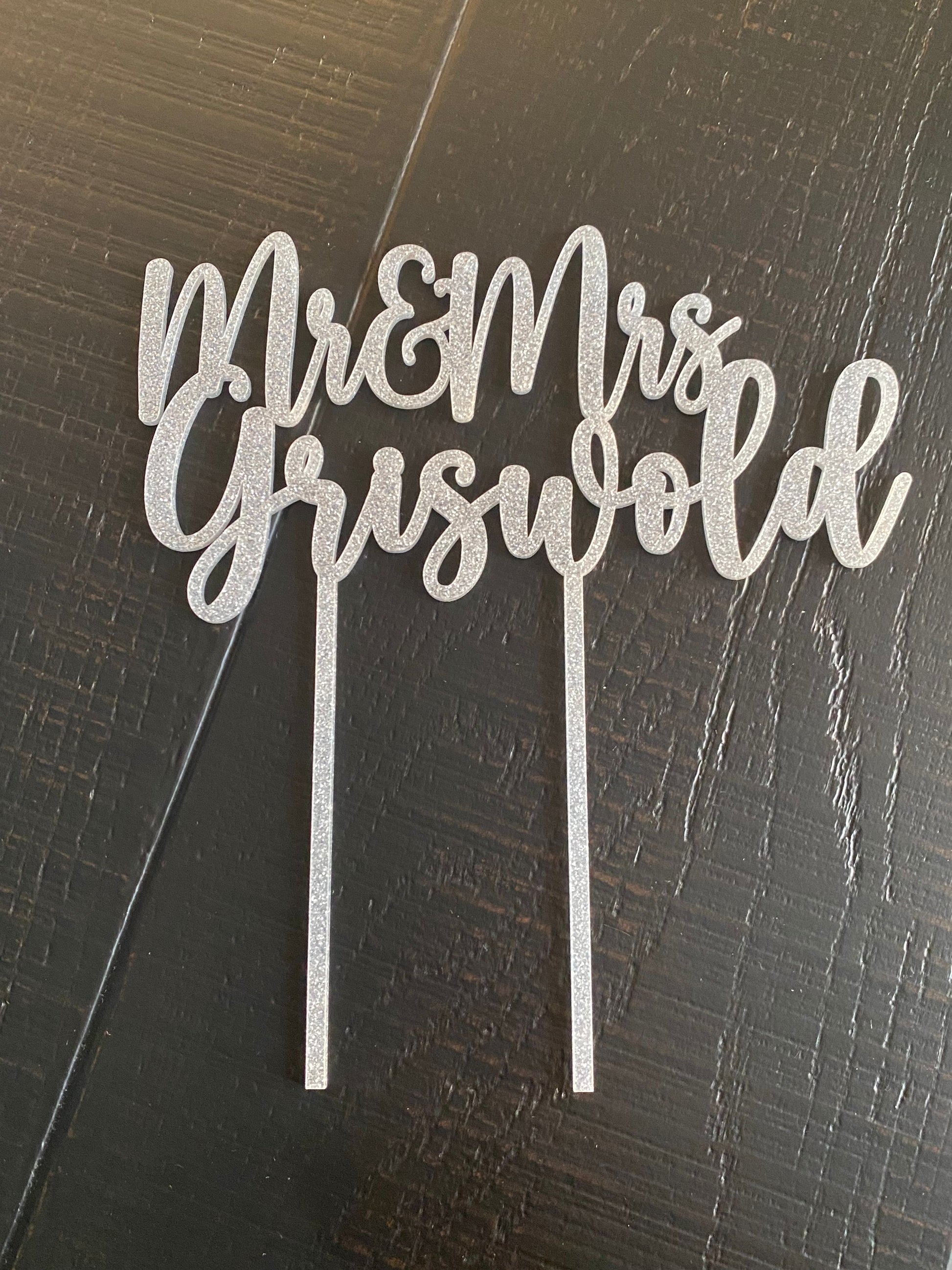 Add a touch of charm to your wedding cake with our beautifully crafted Mr. & Mrs. wedding cake topper.