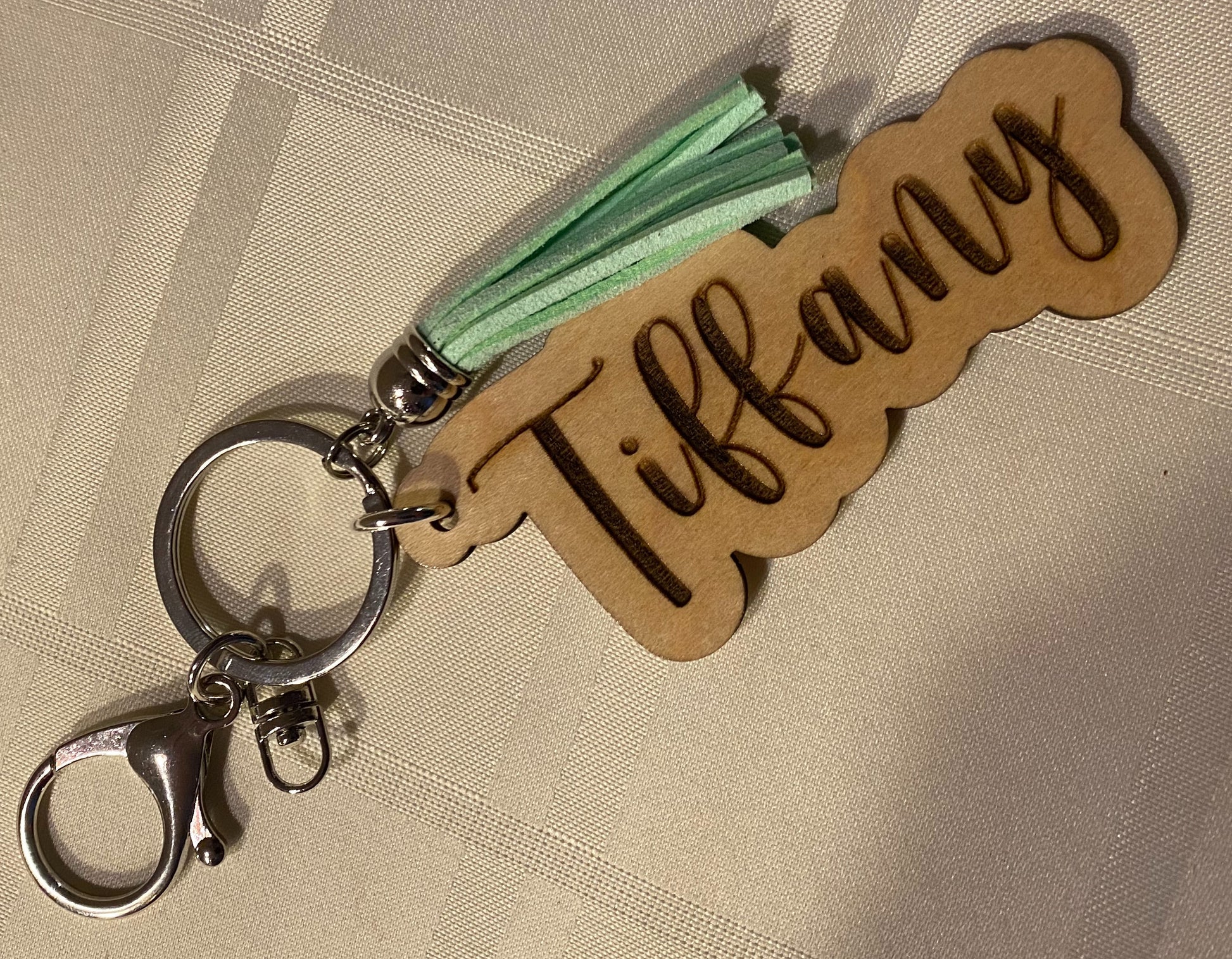 We LoveYourName! A keychain that is shaped of your name. Size will vary depending on your name. Approximately 3 x 1.5 inches. You choose the color of the tassel.