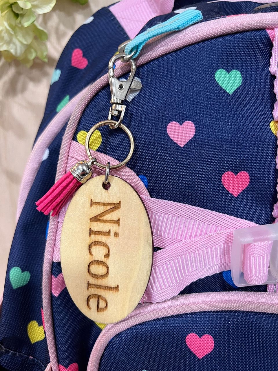 Personalized Oval Backpack Tags with Tassel