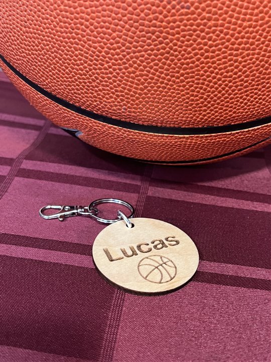Personalized Lunch Bag Tag with engraving of a basketball. Price comes with one line name engraving.