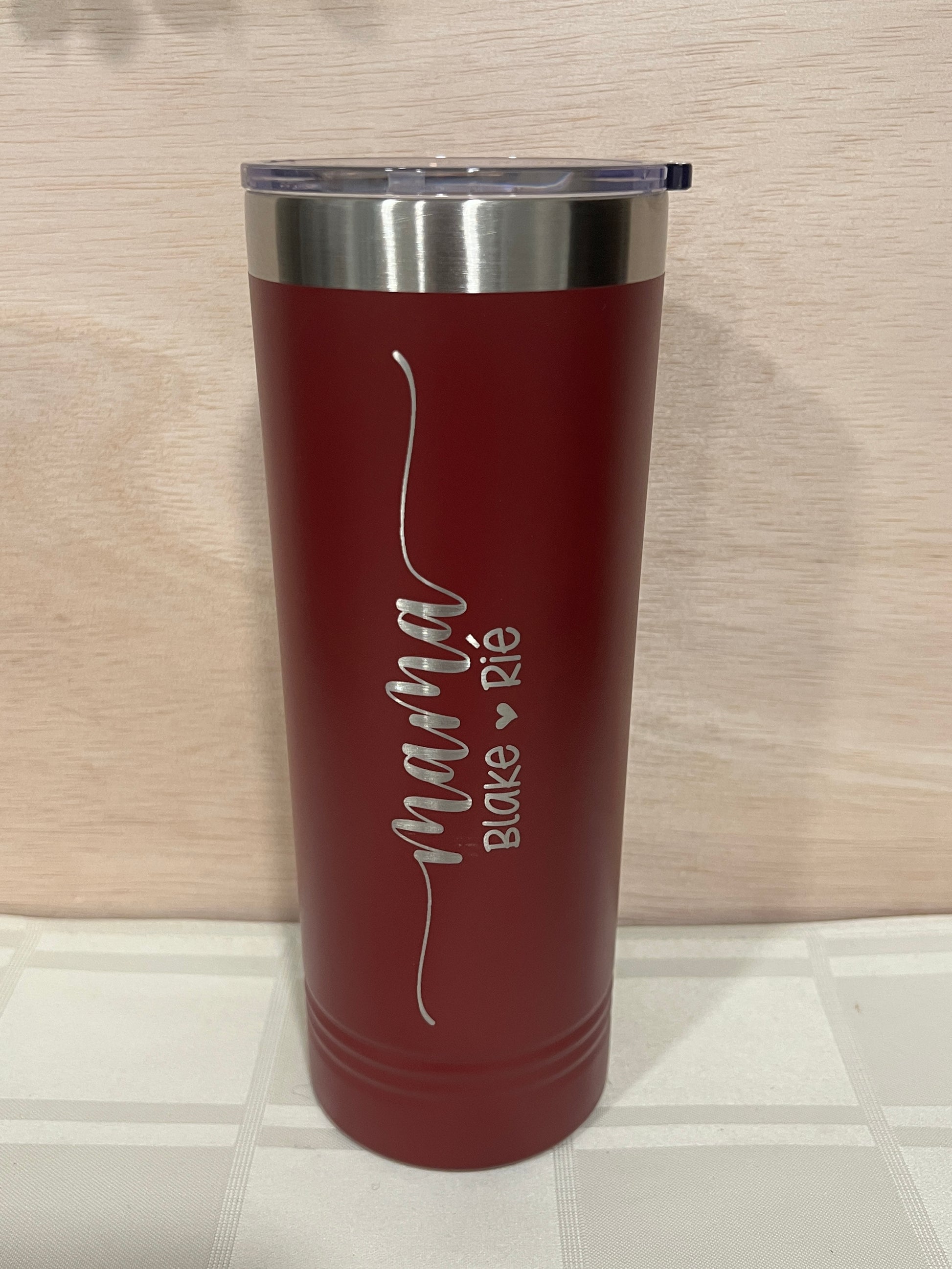 22 oz Personalized Skinny Drink Tumbler with Slider Lid ; Two Line Engraving