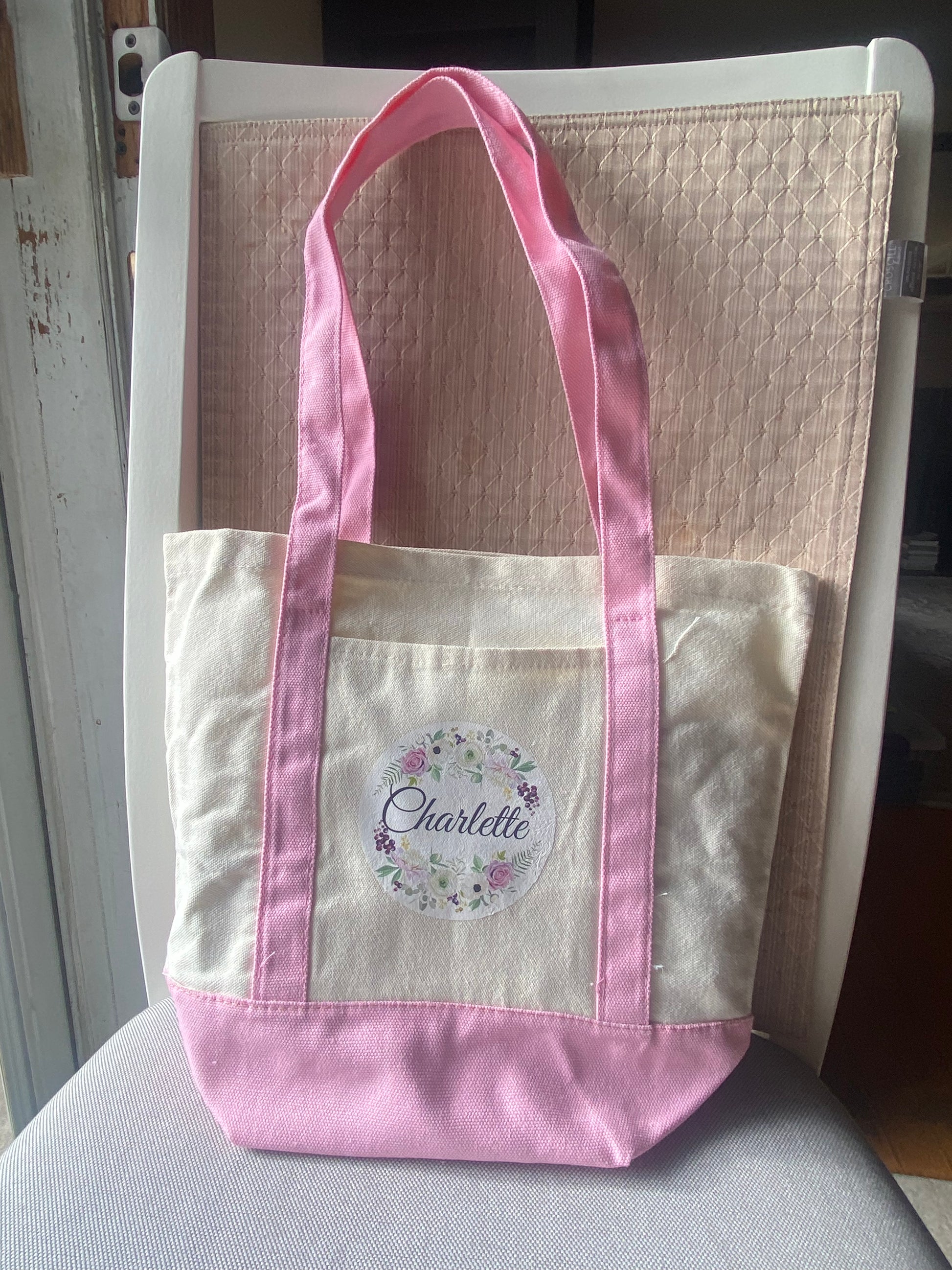 This soft canvas tote features a custom floral name design, perfect for gifting or treating yourself. Whether you’re heading to the market, work, or a weekend getaway, this tote keeps your style sweet and personal.